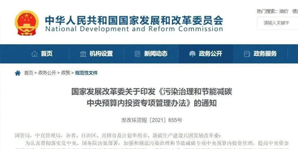 從國家發(fā)改委網(wǎng)站獲悉,近日,國家發(fā)改委印發(fā)《污染治理和節(jié)能減碳中央預(yù)算內(nèi)投資專項(xiàng)管理辦法》(以下簡稱《辦法》)的通知。