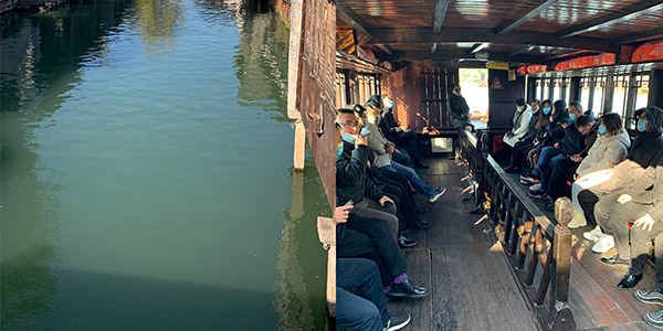 ▲會議結(jié)束之后,全體參會人員一同游覽水鄉(xiāng)景色