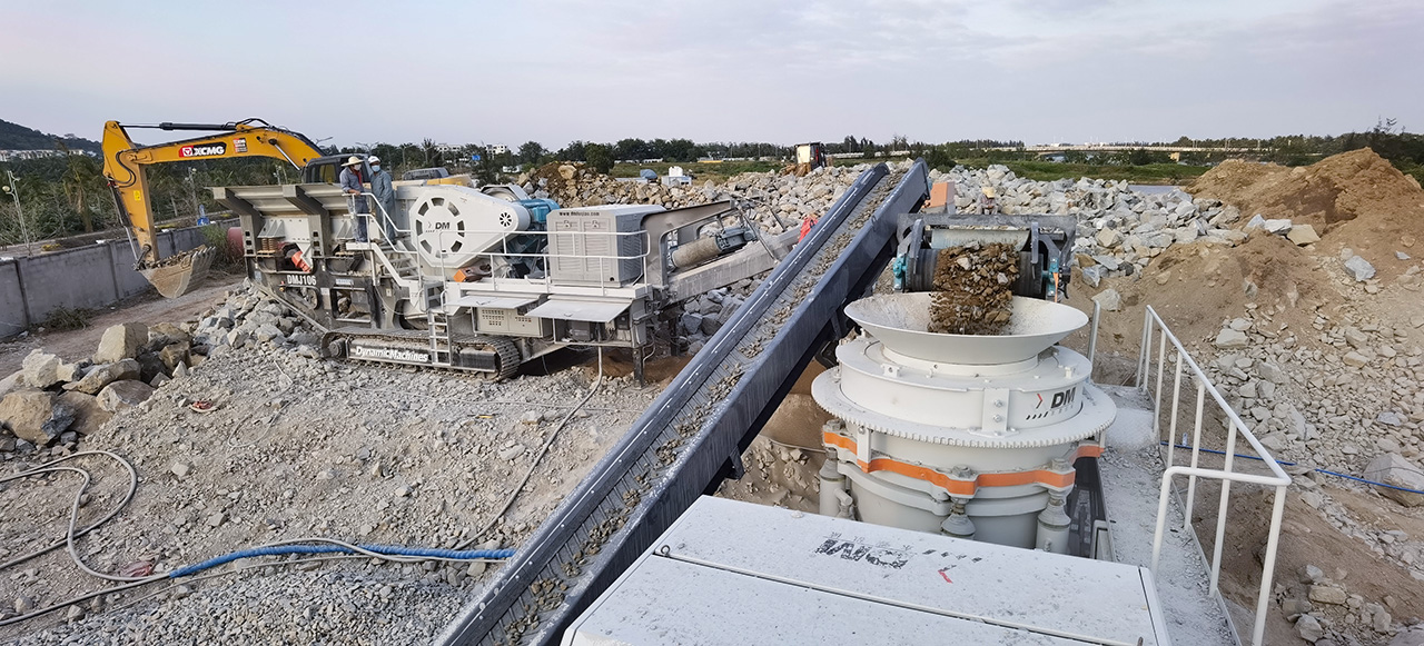 設(shè)備型號:DMJ移動顎式破碎站+DMHP移動圓錐式破碎站+DMS移動篩分站