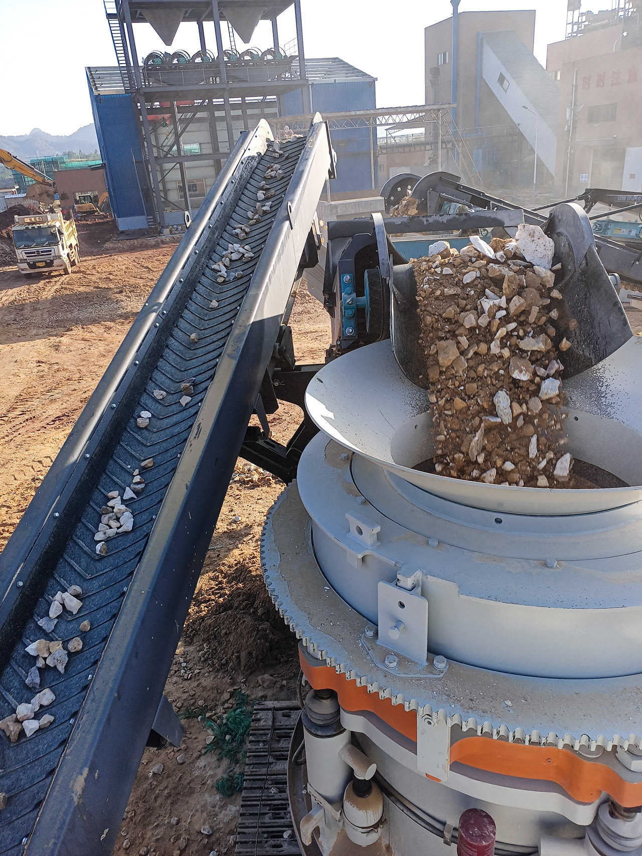 【東蒙案例】顎、錐、篩移動站石英巖破碎生產(chǎn)線火熱投產(chǎn)!